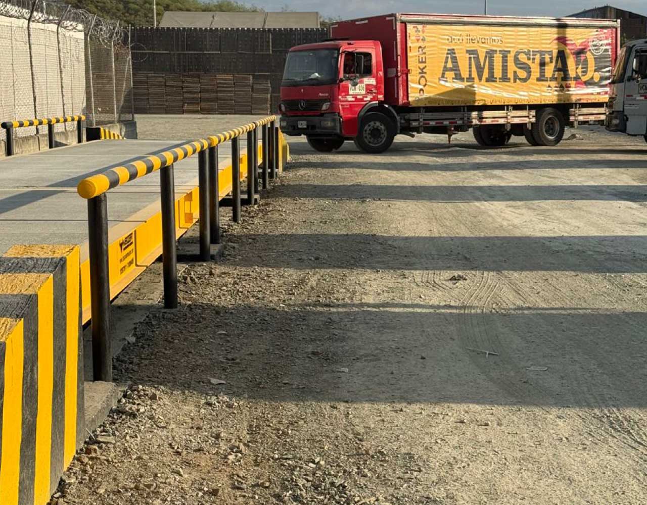 Controla el peso de camiones, volquetas y vehículos de carga con precisión, seguridad y equipos diseñados para trabajo pesado.